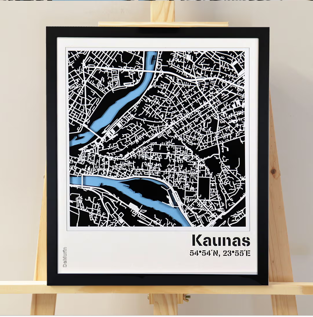 The map you will receive will be exactly like your studio creation, with the added relief. We take care of the creation of the file, the cutting, and the assembly.